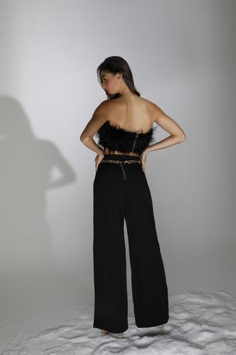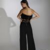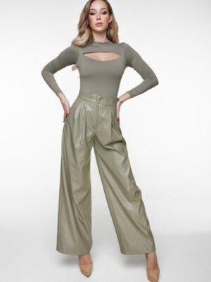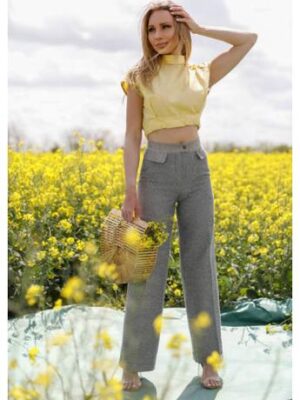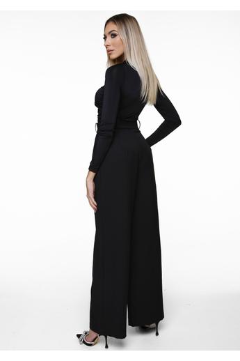 hosszú nadrág – magas derék vonal – széles szárú nadrág – elöl zsebek, berakások, cipzár Termék méretei: 36: Oldalvarrás hossza  cm, Belső varrás hossza cm, Derékbőség cm, Csípőbőség  cm, Nadrágszár szélesség  cm;