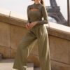 hosszú nadrág – magas derék vonal – széles szárú nadrág – elöl zsebek, berakások, cipzár Termék méretei: 36: Oldalvarrás hossza cm, Belső varrás hossza cm, Derékbőség cm, Csípőbőség cm, Nadrágszár szélesség cm;