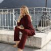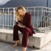 ‘- lezser blézer vállpárnákkal – klasszikus gallér – hosszú ujjak – elöl egygombos rögzítés – két zseb – béléssel – klasszikus csinosított nadrág Blézer 36: háthossz –  cm, vállhossz –  cm, ujjhossz – cm, mellbősége –  cm Nadrág 36: oldalvarrás hossza –  cm, belső szárhossz –  cm, derékbőség –  cm, csípőbőség – cm, szárszélesség – cm; A modell 170 cm magas és 36-as méretet visel.